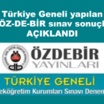 • Türkiye Geneli yapılan 4. ÖZ-DE-BİR sınav sonuçları açıklandı. Sınav sonuçlarına erişmek için linke tıklayabilirsiniz. SINAV SONUÇLARINA ERİŞMEK İÇİN TIKLAYIN!...